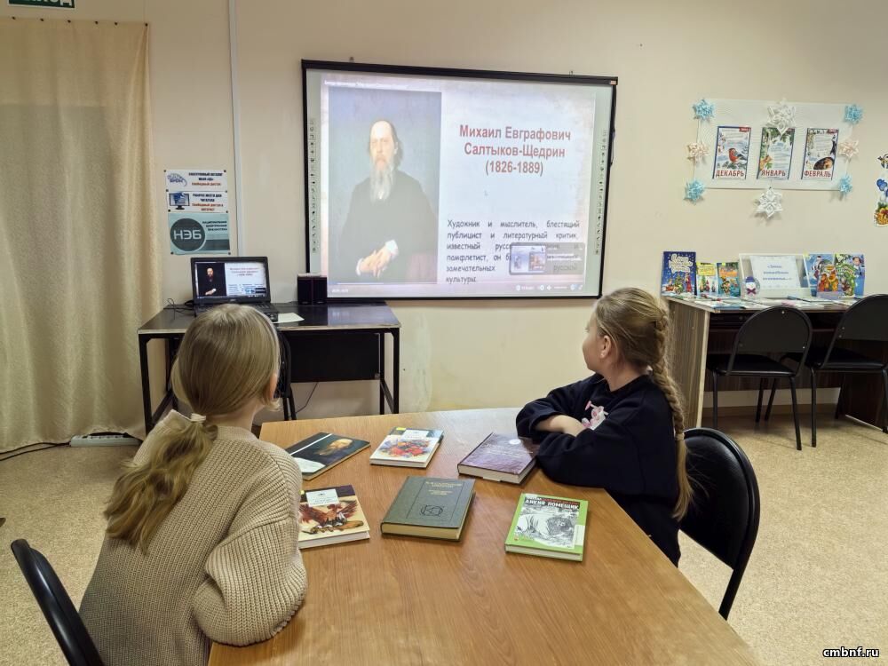 Библиотекарь с ребятами прочитали произведения Михаила Евграфовича Салтыкова – Щедрина.