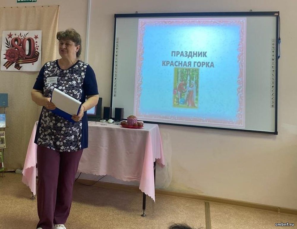 Красная горкаВ библиотеке д. Шустиково прошел познавательно-игровой час для детей «Красная горка». Об обычаях и традициях праздника ребята узнали из интересного и познавательного рассказа библиотекаря. С большим удовольствием гости мероприятия принимали участие в народных забавах и подвижных играх.