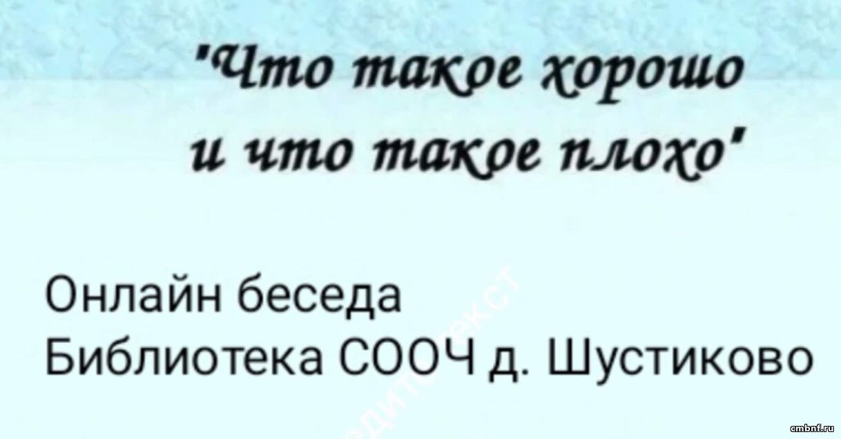 Что такое хорошо и что такое плохо?Что такое хорошо и что такое плохо? Какие поступки похвальны, а какие нет? Разобраться в столь непростых вопросах поможет онлайн-беседа для детей, подготовленная библиотекарем Оксаной Аксеновой (д. Шустиково).