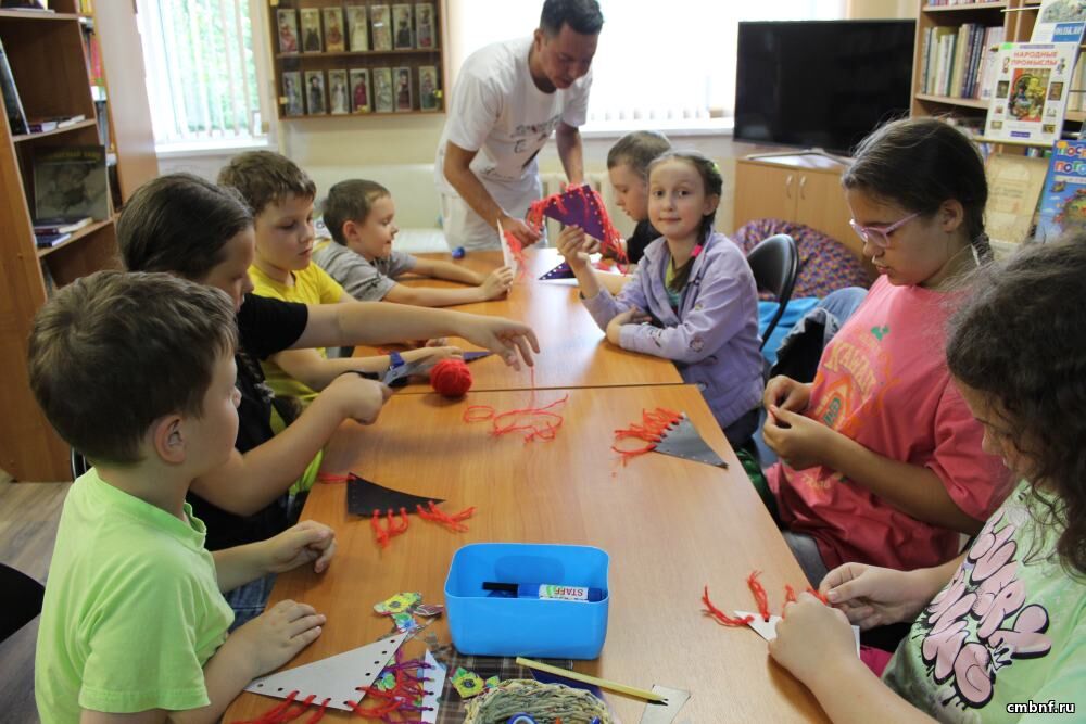 Краски летаВ отделе обслуживания читателей п. Селятино прошел мастер-класс «Краски лета», посвященный Дню фольклора в России. Библиотекари рассказали детям о том, что относится к фольклору, вспомнили народные промыслы, песни, загадки, потешки, былины.