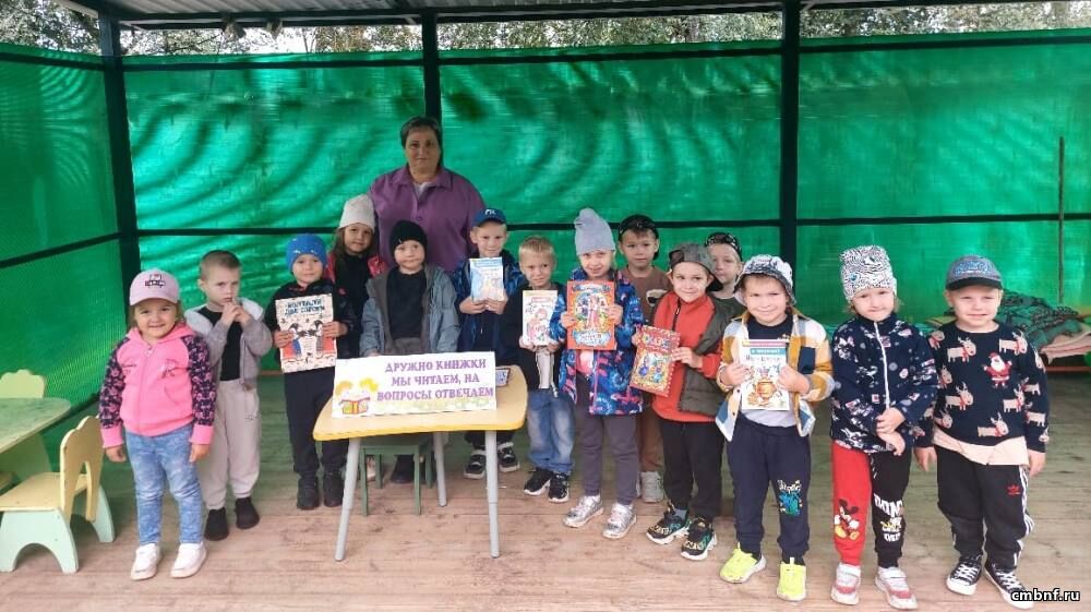 Дружно книжки мы читаем, на вопросы отвечаем19 августа на базе дошкольного отделения лицея имени Героя России В. Волошиной библиотекарь сельского отдела обслуживания читателей д. Головково Наталья Вечкаева провела литературный квиз «Дружно книжки мы читаем, на вопросы отвечаем».