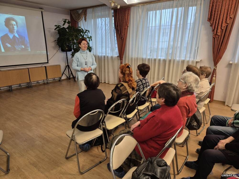 Сотрудники отдела обслуживания читателей по адресу ул. Маршала Жукова, д.10, подготовили для гостей литературно-музыкальной гостиной «В кругу друзей» рассказ и презентацию о русском поэте Серебряного века Александре Блоке.
