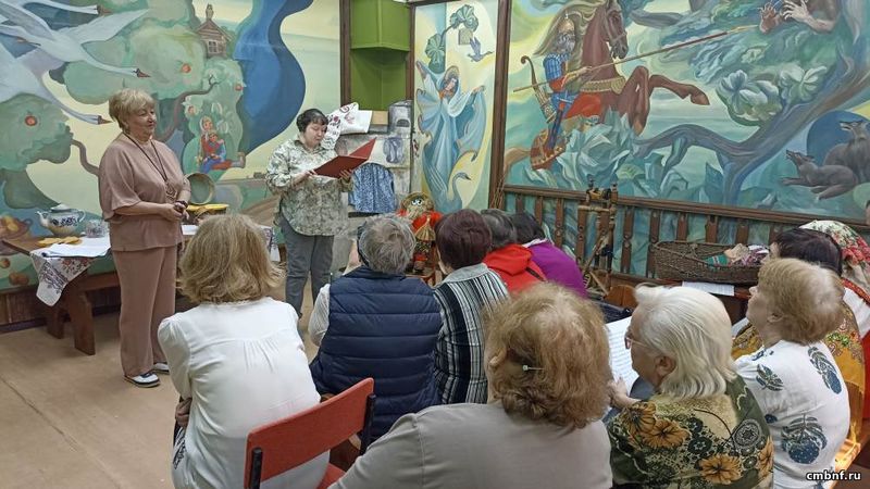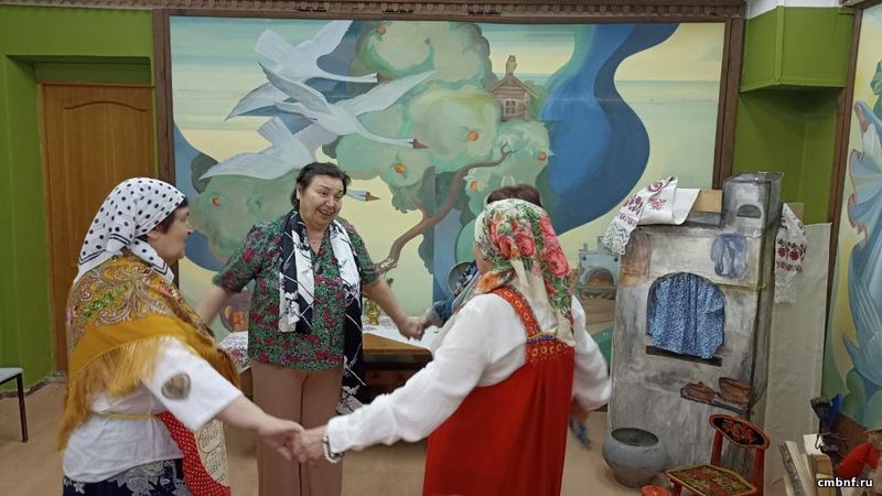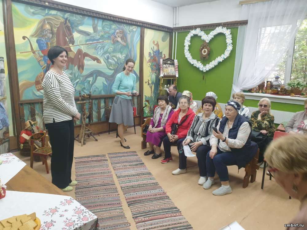 Ведущая Светлана Ревина познакомила с предметами русского быта. Участники встречи подготовили и показали обрядовую сценку «Две соседушки», отгадывали тематические загадки, учились танцевать русскую кадриль. В зале звучали народные песни в исполнении Надежды Печниковой.