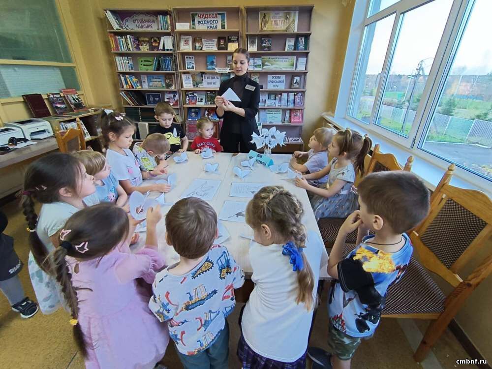 Библиотекарь рассказала о значении праздника, посмотрели фотографии и иллюстрации, а затем приступили к творческой части занятия. Каждый ребёнок сделал бумажного журавлика.