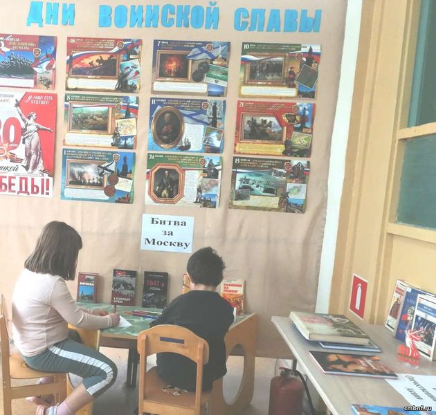 В течение дня дети и взрослые знакомились с книгами, представленными на выставке, рассказывающими о том, как развивались военные события под Москвой, о мужестве и стойкости людей, защищавших нашу столицу воинах, остановивших врага и отбросивших его от Москвы.