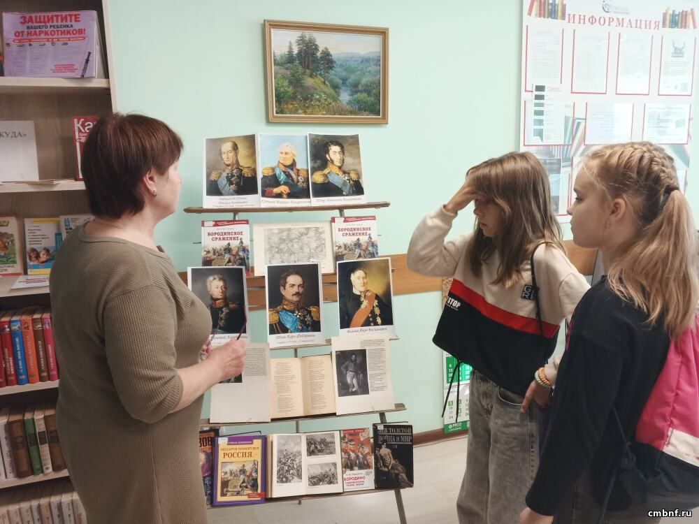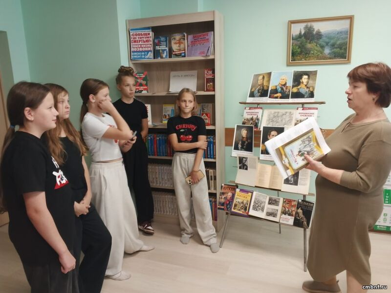 В истории России было много важных событий. Одной из самых героических страниц стала Отечественная война 1812 года. В память о Бородинском сражении сотрудник библиотеки по адресу ул. Шибанкова, 24, подготовила выставку «Бородино в лицах» и провела с учащимися школы «Лира» небольшой урок истории, а также познакомила с наиболее выдающимися музыкальными произведениями, посвященными войне 1812 года, и их авторами.