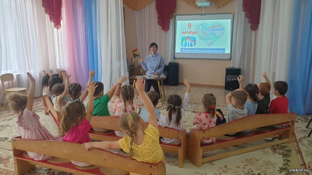 Библиотекарь прочитала ребятам отрывки из разных произведений: стихи Агнии Барто, сказки Александра Пушкина, веселые рассказы Николая Носова.