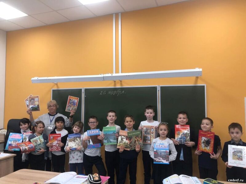 Сотрудники библиотеки по адресу ул. Шибанкова, 24, провели для младших школьников средней школы № 9 час истории «Нам не забыть героев имена», посвящённый Дню героев Отечества.