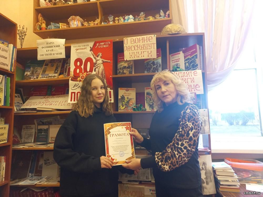 В связи с празднованием Всероссийской недели детской и юношеской книги, посвященной 80-летию Победы в Великой Отечественной войне, самые активные читатели были награждены грамотами. В завершение мероприятия дети посмотрели презентацию «Улицы в лицах».