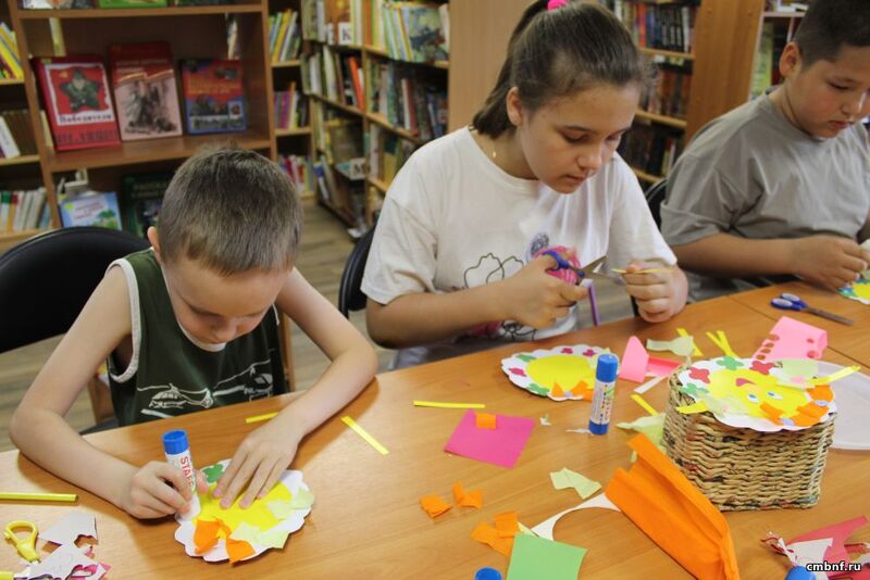 На занятии участники смастерили открытку в виде солнышка из разных видов бумаги. По окончанию мастер-класса библиотекари поздравили ребят с Днем защиты детей и началом летних каникул.
