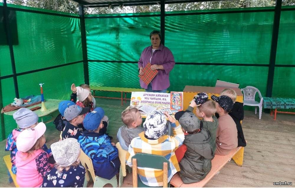 19 августа на базе дошкольного отделения лицея имени Героя России В. Волошиной библиотекарь сельского отдела обслуживания читателей д. Головково Наталья Вечкаева провела литературный квиз «Дружно книжки мы читаем, на вопросы отвечаем».