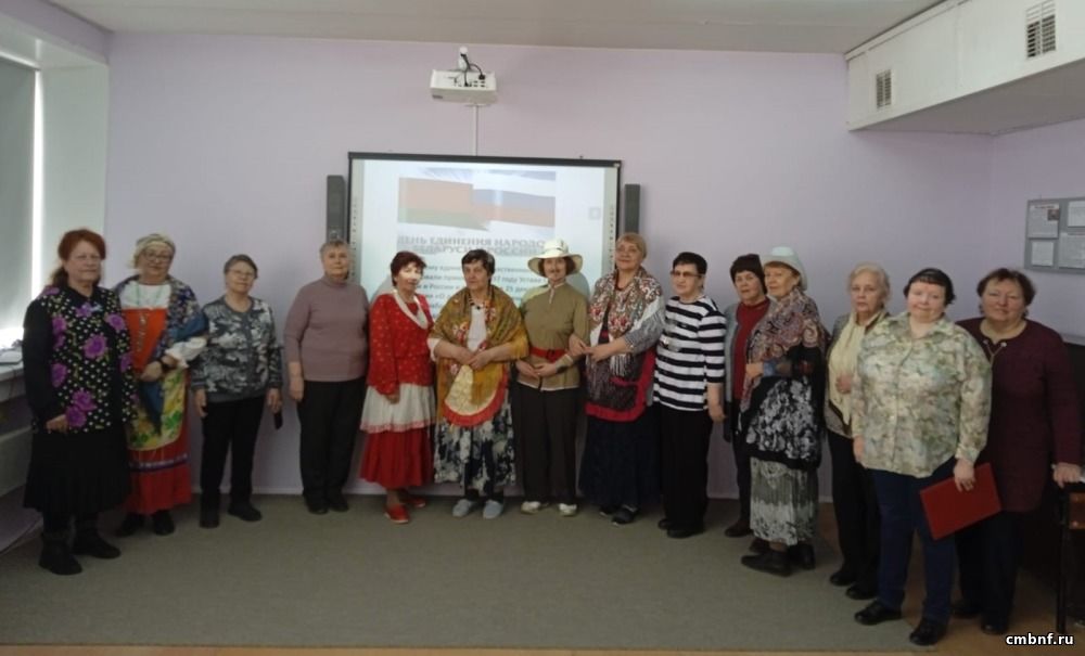 Библиотекарь Светлана Ревина рассказала историю праздника, по слайдам мультимедийной презентации познакомила с символикой двух государств. Гости приняли активное участие в музыкальной викторине «Две сестры: Беларусь и Россия», которую подготовила и провела читательница Евгения Макеева.