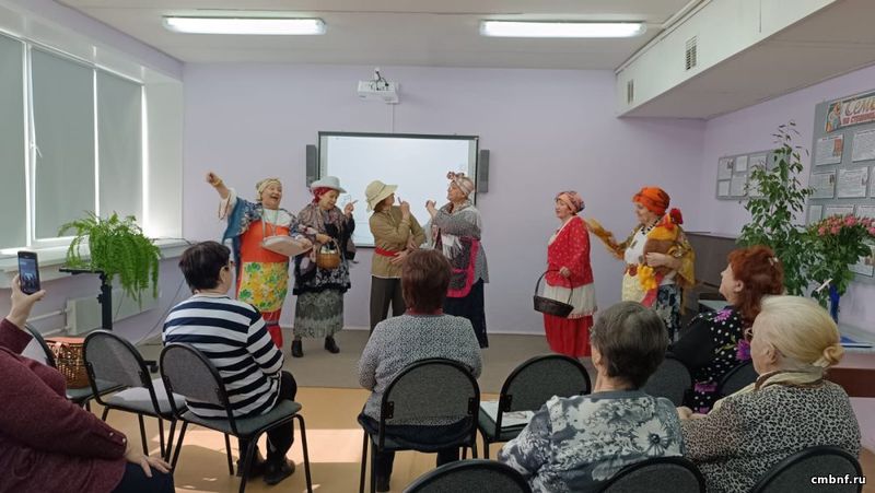 С большим интересом участники встречи посмотрели юмористическую сценку в исполнении самодеятельных артистов библиотечного театрального кружка «Бальзам».