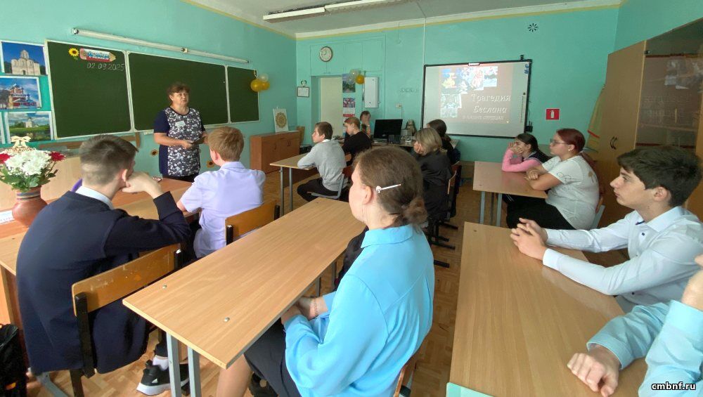 Мероприятие было посвящено страшной трагедии Беслана. Ребята услышали рассказ о хронике событий, о жестокости и бесчеловечности террористов, об отваге и мужестве спецназа, учителей и родителей.