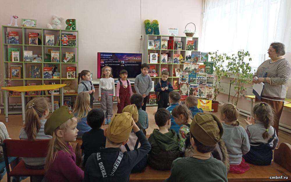 В отдел обслуживания читателей (ул. Латышская, 15б) пришли малыши из детского сада, чтобы принять участие в литературно-исторической викторине «Этот праздник февраля - Армии рожденье».