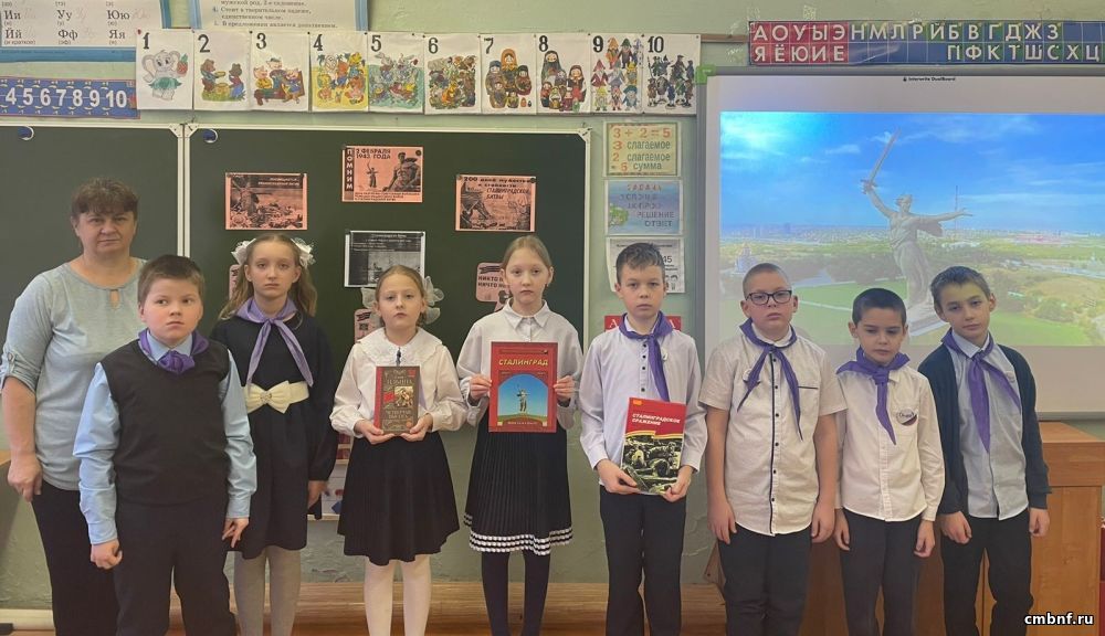 Библиотекарь Оксана Аксенова (д. Шустиково) провела исторический час «Героев помним имена», посвященный Сталинградской битве. Она рассказала детям о значении этой великой битвы на Волге, о героях Сталинграда, прозвучали стихотворения о мужестве защитников города.