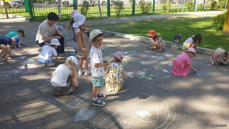 В распоряжении юных художников оказался не простой лист бумаги, а целая территория, на которой можно было дать полную волю своему воображению. После рисования на асфальте ребята совершили увлекательное виртуальное путешествие в страну любимых книг. Они охотно отвечали на вопросы познавательной викторины и отгадывали загадки о природе.