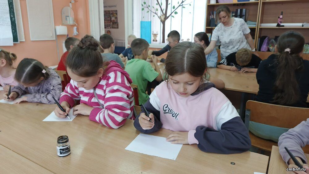 Ребята рассмотрели бересту и восковые дощечки, сравнили буквы кириллицы и глаголицы, а затем сами попробовали писать писалом и перьевыми ручками.
