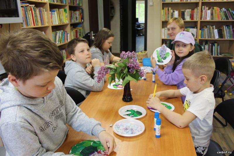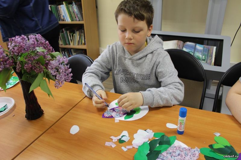Участники мастер-класса изготовили веточку символа весны сирени при помощи пластилина и гофрированной бумаги.