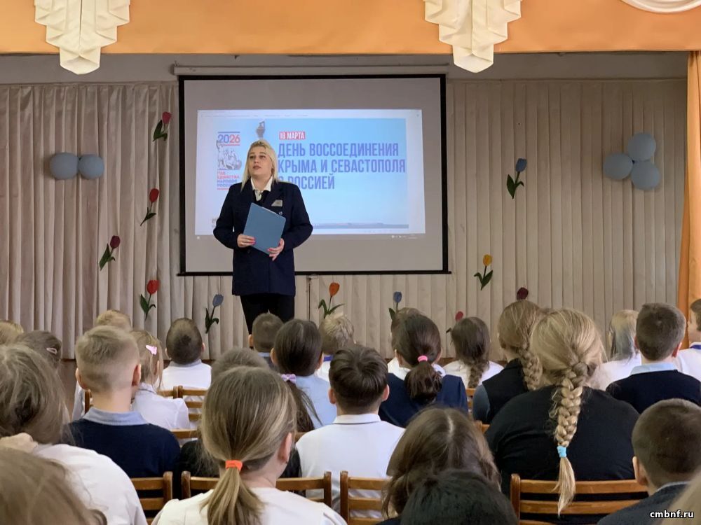 Мероприятие было посвящено одной из самых значимых дат в новейшей истории России — годовщине воссоединения Крыма с Россией. Ребята узнали о событиях 2014 года, о значении этого исторического шага для нашей страны и жителей полуострова, о том, как Крым вновь стал частью большой России.
