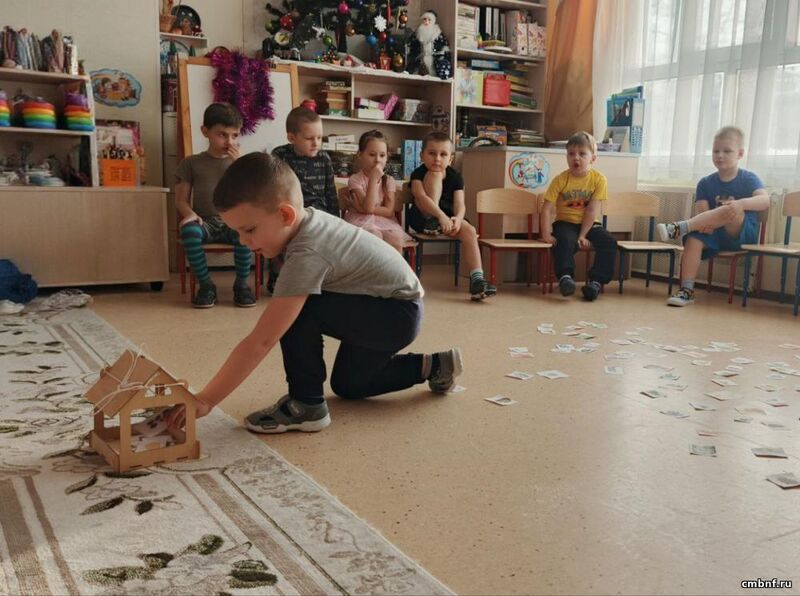 Дети отправились «В лес по загадки» и успешно их разгадали. Затем побывали «В птичьей столовой» и научились правильно кормить птиц. Заглянули на «Сказочную опушку», где вспомнили любимые зимние сказки и рассказы таких писателей, как М. Пляцковский, Г. Ладонщиков, В. Одоевский.