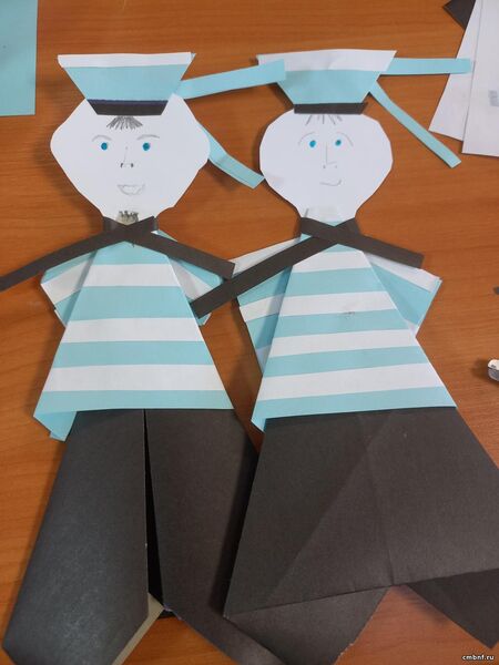 Участники занятия в честь праздника смастерили моряка в стиле «оригами».
