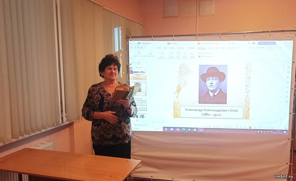 Библиотекарь представила участникам презентацию и рассказ о жизни и творческом пути великого поэта. Особый интерес у слушателей вызвал рассказ о мистическом смысле цикла «Стихи о Прекрасной Даме» и глубоком трагизме поэмы «Двенадцать».