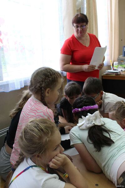 Библиотекарь Оксана Сажина (д. Устье) пришла в гости в детский оздоровительный лагерь Татищевской школы, где провела квест «Литературное путешествие».