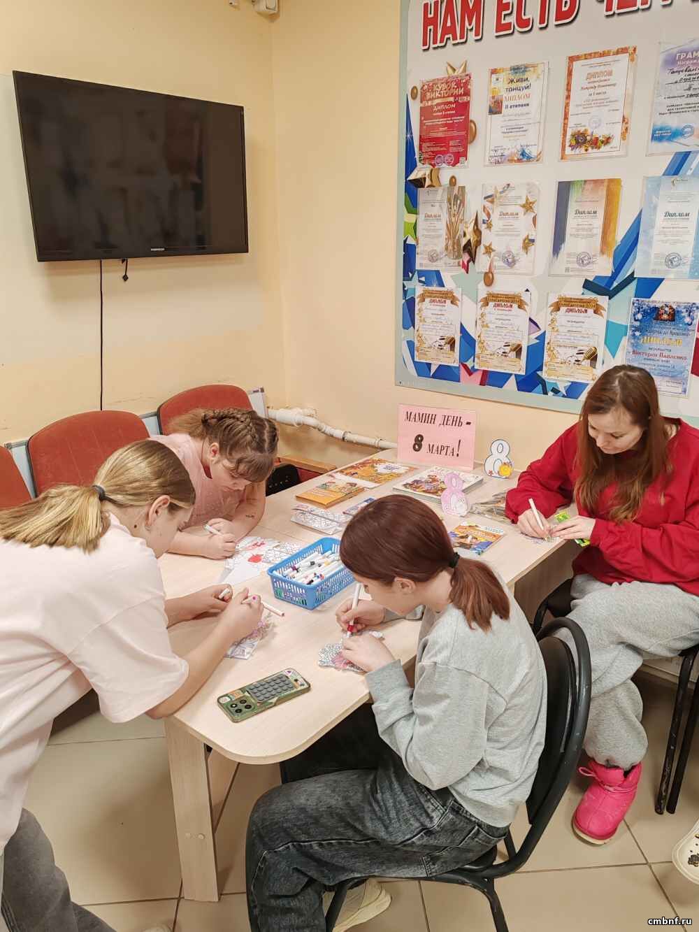 На выставке была представлена детская литература о мамах. Ребята, чтобы порадовать своих любимых мамочек и бабушек, сделали для них открытку «8 марта».