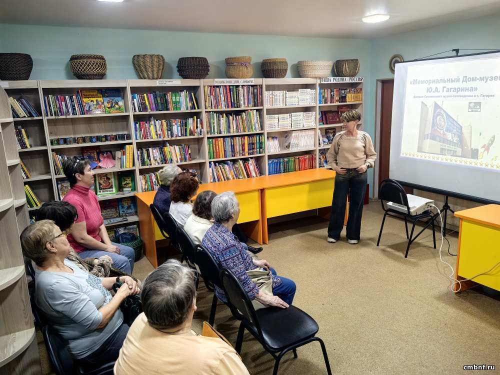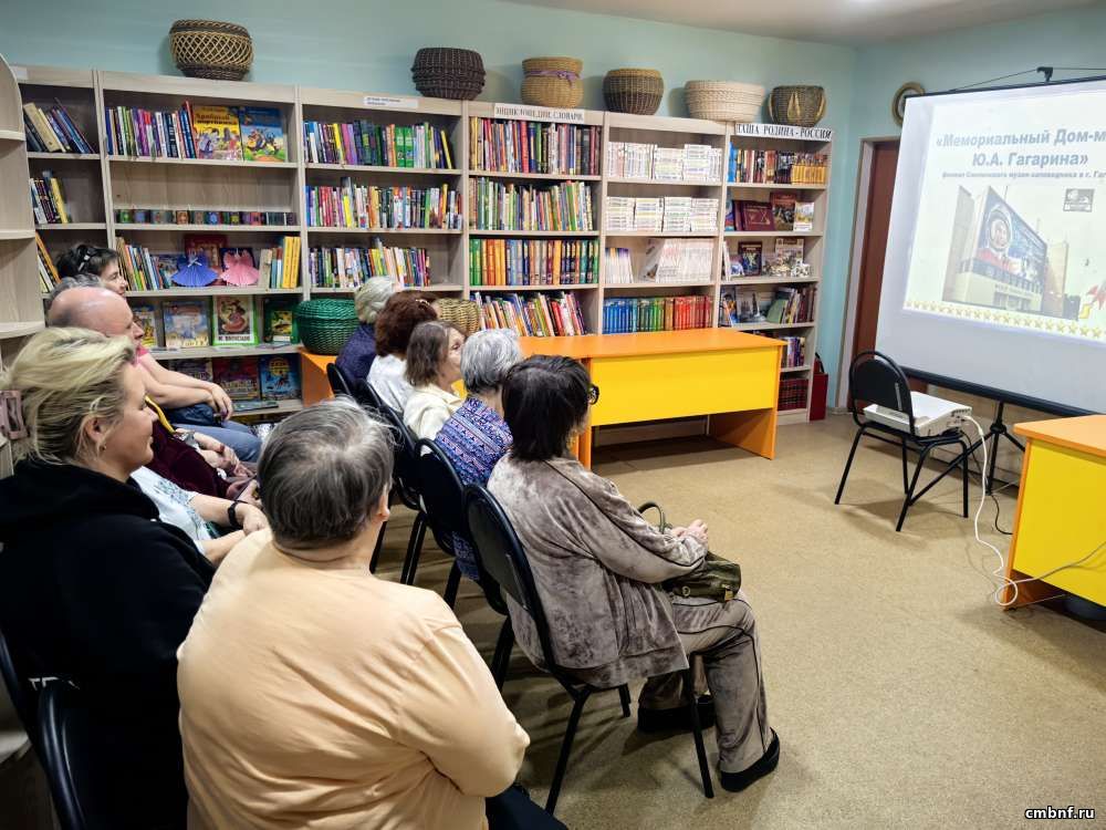 Библиотекарь Анна Берёза провела лекцию с видеоэкскурсией про единственный в своем роде музей Первого космонавта, располагающий уникальными материалами из архива семьи Гагариных: документами, фотографиями, письмами, личными вещами Ю.А. Гагарина.