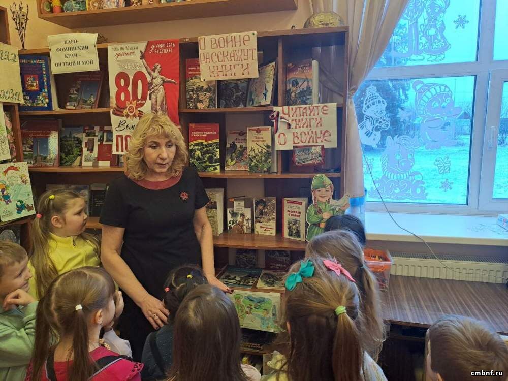 Защитники Наро-ФоминскаВ библиотеке д. Устье прошёл урок мужества «Защитники Наро-Фоминска», посвященный Дню освобождения города от немецко-фашистских захватчиков. Битва под МосквойВ рамках системного расписания в библиотеке д. Шустиково прошло мероприятие с детьми, посещающими объединение «Кругозор». Библиотекарь с ребятами прочитали книгу Сергея Алексеева «Битва за Москву». Наш город-воинСотрудник библиотеки по адресу ул. Шибанкова, 24, совместно с учителем И.В. Теряевой провели с учащимися Наро-Фоминской коррекционной школы час истории «Наш город-воин», посвящённый освобождению родной наро-фоминской земли от немецко-фашистских захватчиков в 1941 году. Они стояли за Победу, они стояли за МосквуВ сельском отделе обслуживания читателей с. Каменское прошла литературная программа «Они стояли за Победу, они стояли за Москву», организованная для учеников Атепцевской средней школы. Мероприятие было приурочено к важной дате — Дню освобождения Наро-Фоминска от немецко-фашистских захватчиков. Новогодняя посылка солдатуВ сельском отделе обслуживания читателей с. Каменское доброй традицией стало участие в благотворительной акции "Посылка солдату на СВО". Новогодняя посылка солдатуАкция «Новогодняя посылка солдату», организованная Центральной библиотекой Наро-Фоминского городского округа, стала символом единства тыла и армии в наше непростое время. Сотрудники библиотеки вместе с активными читателями проявили большую заботу и внимание, собрав новогодние подарки для военнослужащих, участвующих в специальной военной операции. Они стояли за Победу, они стояли за Москву...5 декабря, в День воинской славы России, в библиотеке д. Таширово прошел урок мужества для ребят начальных классов. Во время мероприятия учащиеся познакомились с основными событиями Московской битвы, жизни военной Москвы и обороны города. О героях наших времёнВ целях поддержки спецоперации и военно-патриотического воспитания молодёжи в библиотеке д. Веселёво состоялся урок мужества «О героях наших времён». Новогодняя посылка солдату"Новогодняя посылка солдату" - акция Центральной библиотеки Наро-Фоминска городского округа. С заботой и любовью были собраны медикаменты для ребят на СВО. На огненных московских рубежахБиблиотеку по адресу ул. Шибанкова, 24, посетили члены Наро-Фоминского отделения Всероссийского общества инвалидов. Библиотекари подготовили для них патриотический час «На огненных московских рубежах», посвящённый Дню воинской славы - началу контрнаступления советский войск под Москвой в 1941 г. Ты бессмертен, солдат!В сельском отделе обслуживания читателей пос. Архангельский проведён урок мужества «Ты бессмертен, солдат». Библиотекарь рассказала о главном военном мемориале страны — Могиле неизвестного солдата. Участники мероприятия познакомились с книгами о великих сражениях, а также с Книгой Памяти. Гордимся славою героевДень Героев Отечества - памятная дата, которая отмечается в нашей стране ежегодно 9 декабря. Сотрудник отдела обслуживания читателей познакомила школьников с историей этого праздника и рассказала о славных полководцах прошлого - Александре Суворове, Федоре Ушакове, Михаиле Кутузове. И помнит мир спасенный....Солисты вокальной студии "Квинта", юные читатели сельского отдела обслуживания с. Каменское, Смирнов Владисл