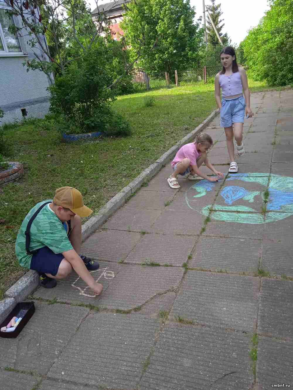 Детям было предложено нарисовать мелками на асфальте цветные картинки о том, как они видят наш прекрасный мир, без терроризма и войн.