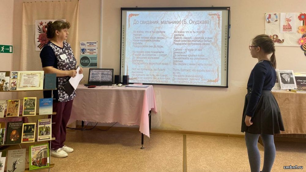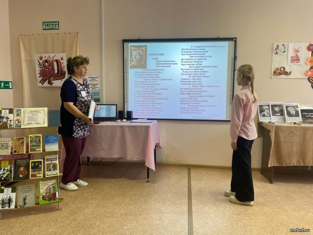 Библиотекарь Оксана Аксёнова познакомила читателей с фронтовым творчеством Константина Симонова, Юлии Друниной, Булата Окуджавы.