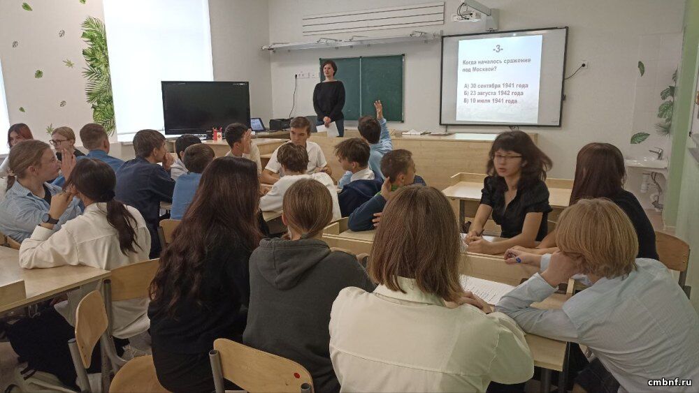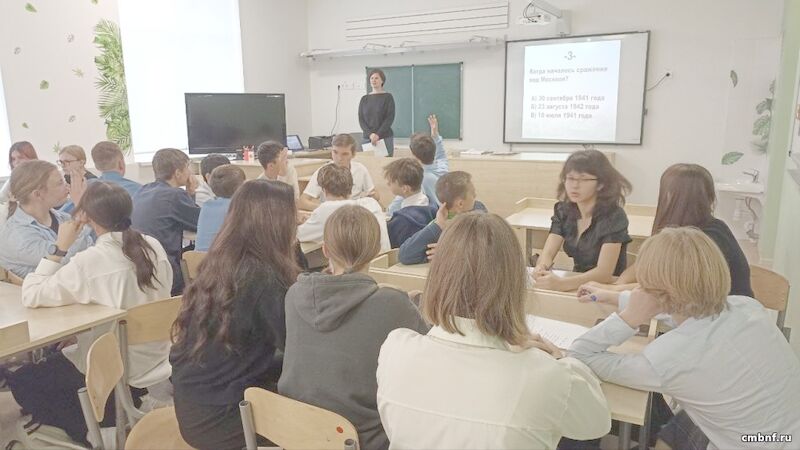 Библиотекарь рассказала школьникам, что битва под Москвой стала первым крупным поражением гитлеровских войск во Второй мировой войне. Во второй части мероприятия ребята разделились на команды и выполнили задания: они узнавали имена героев, подбирали лозунги для агитационных плакатов того времени и участвовали в тематической викторине.