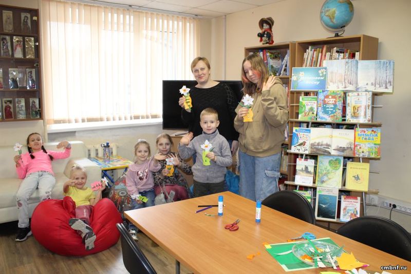 Библиотекари рассказали ребятам о весеннем времени года, о признаках и народных приметах. Затем дети вспоминали пословицы и поговорки о весне, отгадывали загадки. На мастер-классе ребята из разных видов бумаги мастерили нежный нарцисс в вазе - символ долгожданной весны.