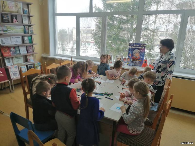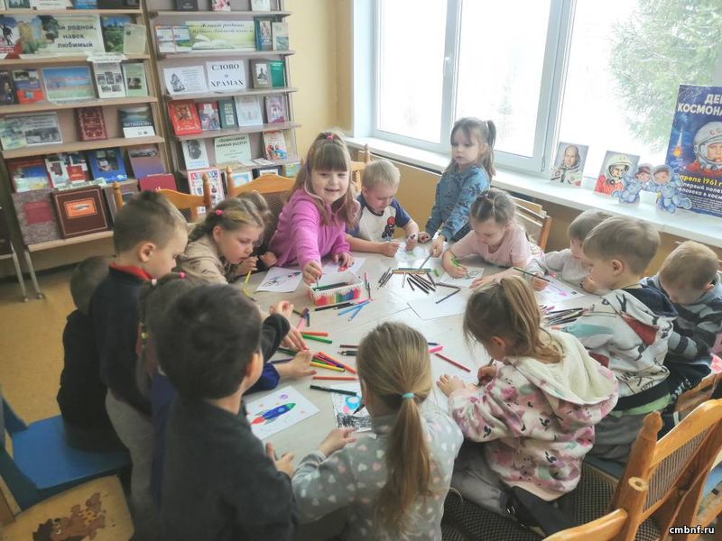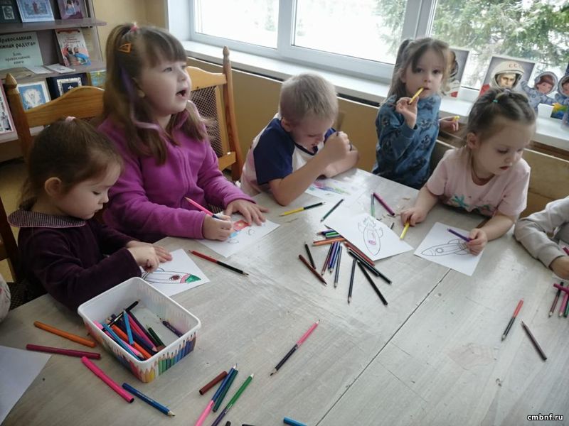Дети приняли участие в космической викторине. Мероприятие завершилось любимым занятием ребят - раскрашиванием «ракеты».