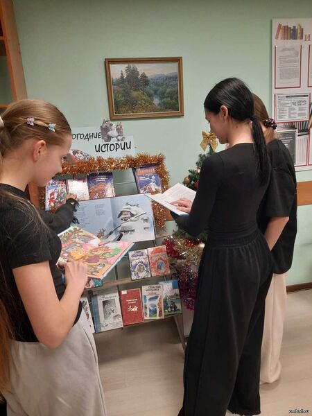 Сотрудники библиотеки по адресу ул. Шибанкова, 24, оформили книжную выставку «Новогодние истории».