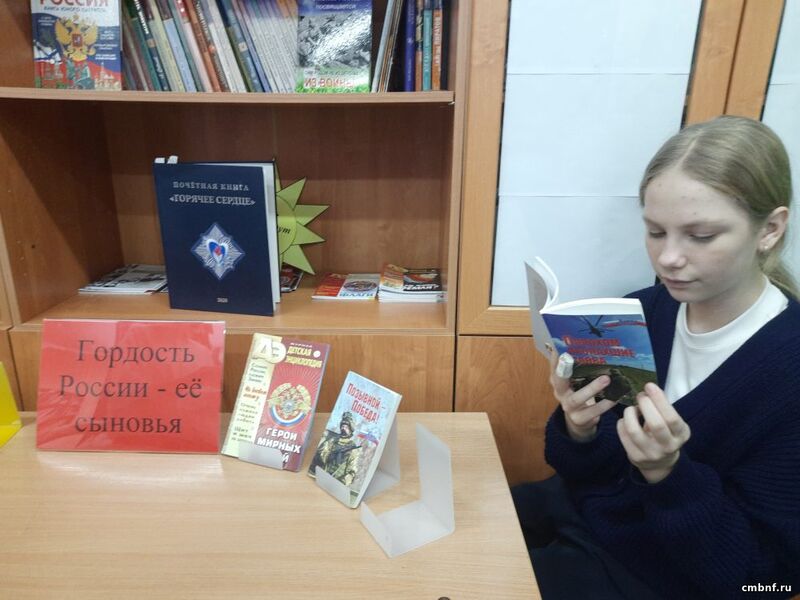Библиотекарь рассказала, когда и почему началась Специальная военная операция на Украине, о мужестве и героизме военнослужащих, участвующих в ней. К мероприятию подготовлена книжная выставка «Гордость России - её сыновья». Ребята читали стихи о патриотизме, воинском долге, службе во благо Отечества.