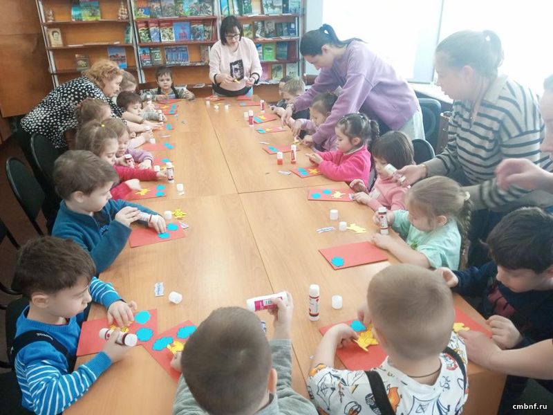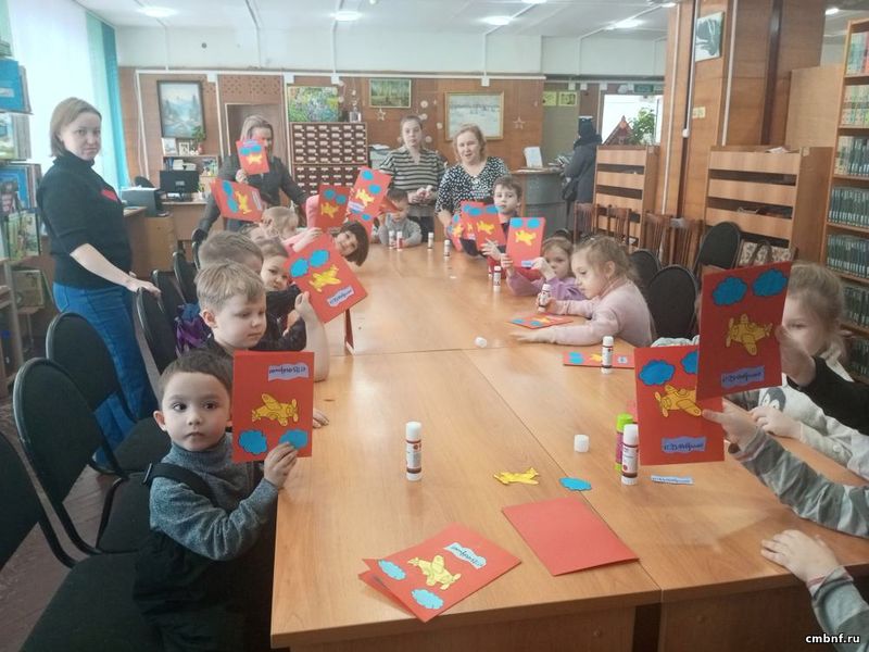 Библиотекари также провели мастер-класс «Подарок для папы», на котором дети сделали поздравительную открытку для пап к празднику Защитника Отечества.