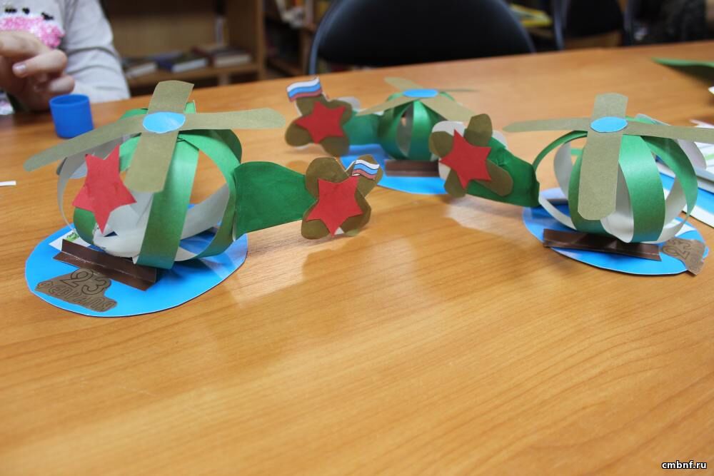 Самые ценные подарки к празднику, это те, которые сделаны своими руками. Ребята из картона и разных видов бумаги смастерили вертолет, который станет прекрасным подарком для пап, дедушек, братьев