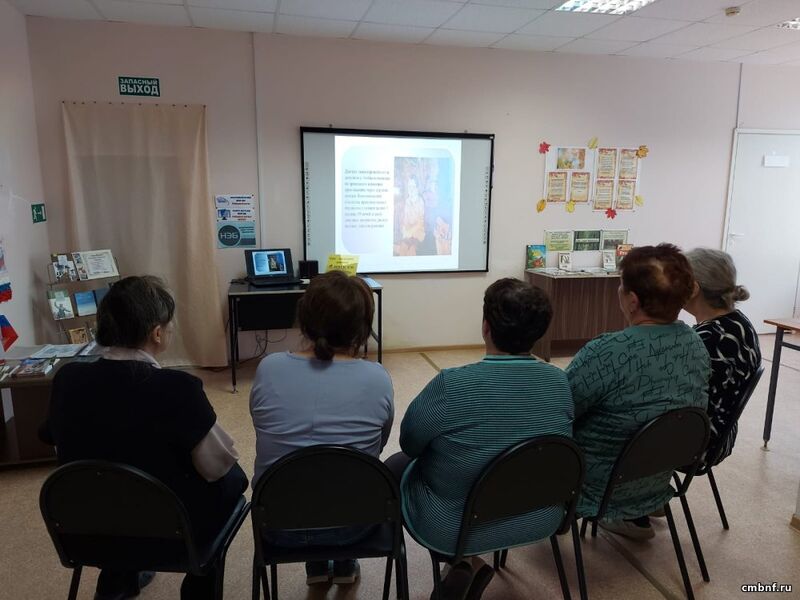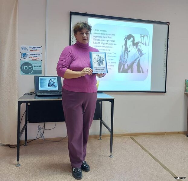 Библиотекарь подготовила для присутствующих презентацию с информацией о том, как молодые девушки – жительницы деревни, во время войны помогли нашим раненым солдатам.