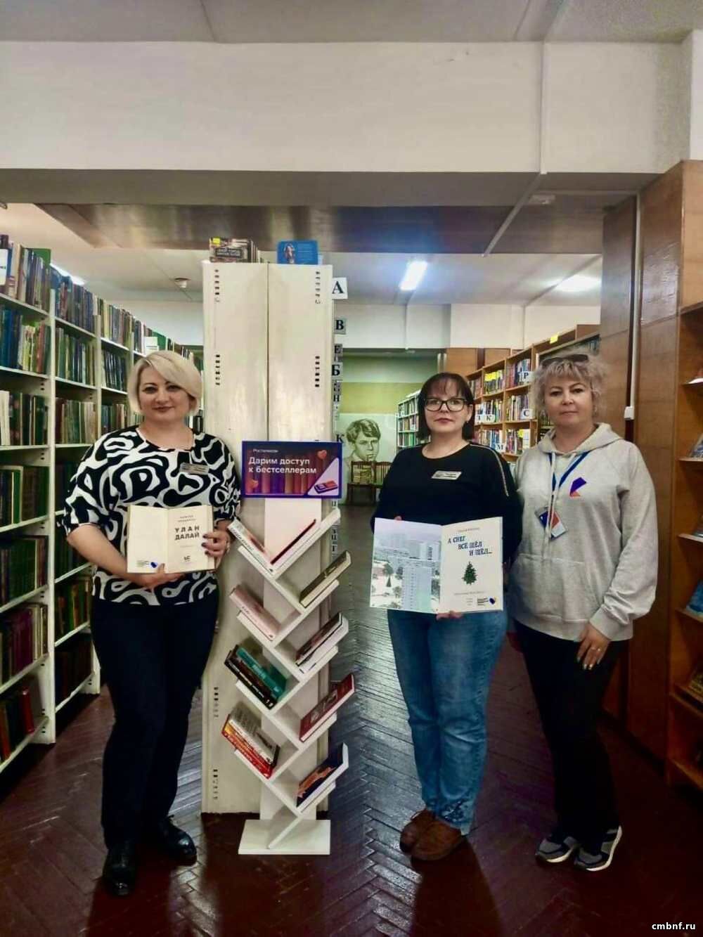 В отделе обслуживания читателей по адресу ул. Маршала Жукова, 10, установили книжную полку с лучшими произведениями современности. Мероприятие прошло при участии представителя провайдера и сотрудников библиотеки Нестеренко Людмилы и Матвиенко Анны.