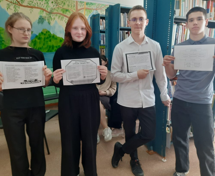 Библиотекарь рассказала учащимся, что терроризм и экстремизм сегодня стали серьезнейшей проблемой, как важно проявлять гражданскую бдительность, как не стать жертвой теракта и как правильно вести себя в случае угрозы террористического акта.
