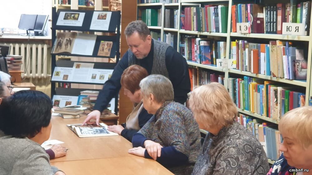 Для участников встречи ведущим библиографом Ириной Анатольевной Лукьяновой проведены обзор книжной выставки «Иконописные школы Древней Руси» и тест по теме «Древнерусские иконы XI-XIII вв.».