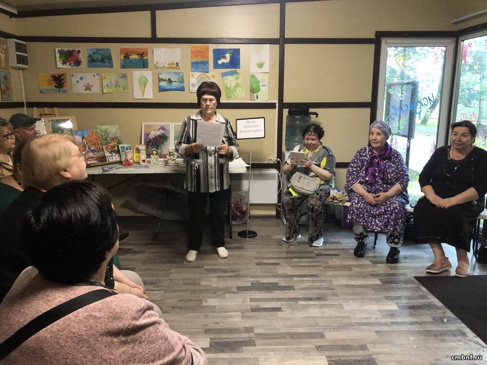 Библиотекарем Светланой Ревиной был проведён обзор книг местных авторов. Участники мероприятия познакомились с мастерицей Валентиной Шустовой и её самодельными куклами, послушали стихи поэтов–земляков Евгении Макеевой и Николая Кутобаева, проявили свои артистические таланты в юмористической сценке «Радиостанция «Лето».