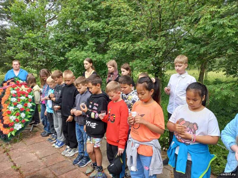 В рамках сотрудничества библиотеки, Дома культуры п. Новая Ольховка и школьного лагеря Ново-Ольховской средней школы состоялось торжественное мероприятие «Свеча памяти» у братского захоронения.