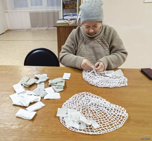 Старшее поколение деревни принимает активное участие в акции. Рукодельницы вяжут теплые носки, варежки, перчатки, а также белые маскировочные сеточки на головные уборы