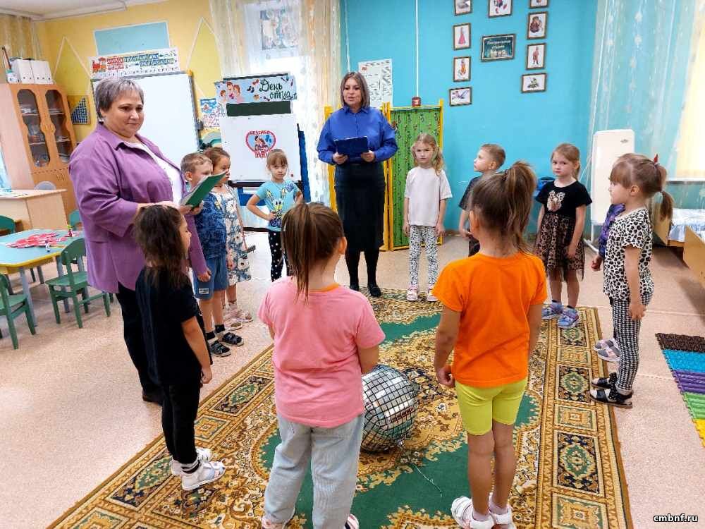 В рамках празднования Дня отца библиотекарь сельского отдела обслуживания читателей д.Головково Наталья Вечкаева и культорганизатор ДК «Головково» Юлия Гнедина на базе дошкольного отделения Лицея им. Героя России В. Волошиной провели празднично-игровую программу «Ты для меня - пример во всём» для воспитанников группы «Солнышко».