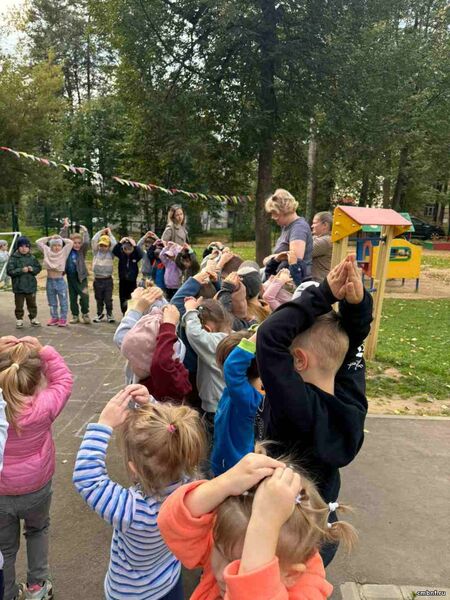 В детском саду «Полянка» сотрудник библиотеки (адрес ул. Шибанкова, 24) провела игровую программу под названием «У природы нет плохой погоды».