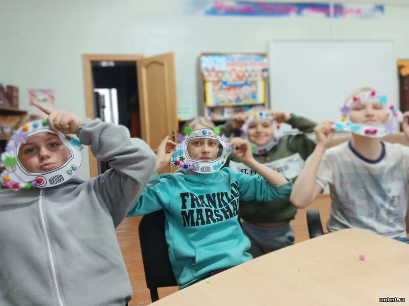 Для ребят была оформлена книжная выставка и прошёл увлекательный мастер-класс «Космический шлем». Этот творческий момент вызвал много улыбок и положительных эмоций у всех читателей.